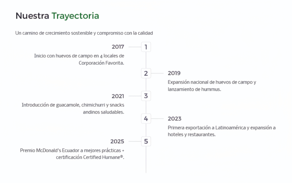 Crecimos cosechando confianza y creando productos que conectan al campo con tu vida diaria. Cada huevo, cada hummus, cada snack andino cuenta nuestra historia: la de una empresa ecuatoriana que transforma lo natural en experiencias auténticas.